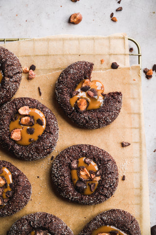 Go ahead, preheat your oven and get ready to make @the.fit.peach's Toffee Caramel Thumbprint Cookies!